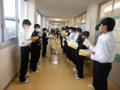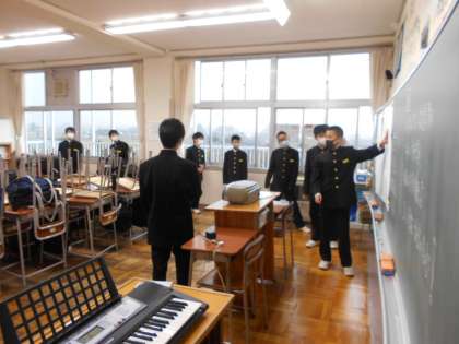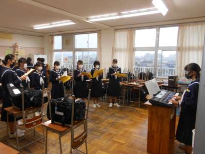 放課後合唱練習スタート!1年生 公開日 2021/10/20 更新日 2021/10/20 1学年 10月20日(水) 本日より、放課後合唱練習がスタートしました。1年生の練習の様子です。リーダー中心に生徒主体で練習しています。