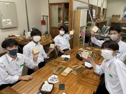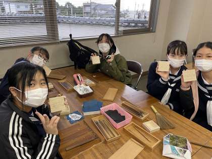 3年生 修学旅行2日目クラス別学習 1組 公開日 2021/10/22 更新日 2021/10/22 3学年 1組の2日目は「いなみ木彫りの里創遊館」に行きました。 桐の小箱にイラストを描き、線に沿って木を彫っています。職人魂に火が付き、時間ぎりぎりまで製作していました。
