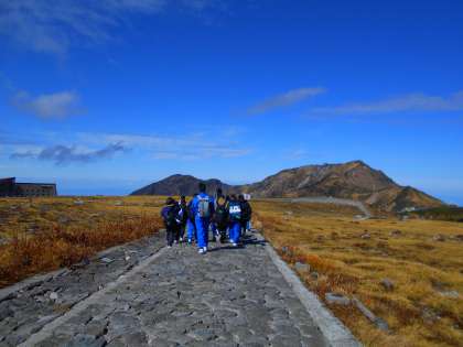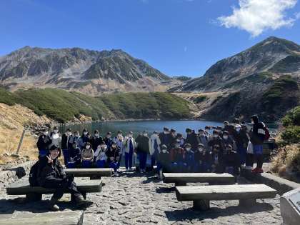 3学年 修学旅行1日目立山黒部アルペンルート 室堂散策 公開日 2021/10/23 更新日 2021/10/23 3学年 1日目最初の目的地は、立山室堂みくりが池の散策です。2日前雷雨予報だったのが嘘のように快晴の中での散策になりました。