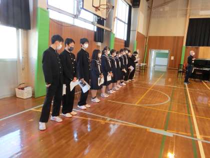 2年生 合唱コンクールリハーサル 公開日 2021/10/28 更新日 2021/10/28 山室中学校のページ 10月28日(木) リハーサルでは、合唱コンクールの立ち位置や出入りの仕方等、確認しました。学年のみんなの前で、曲を初披露ということもあり、緊張している様子です。ここからがラストスパートです。クラスのみんながひとつになる歌声を最後まで目指していきましょう!