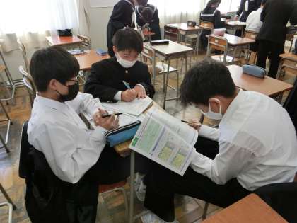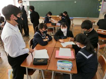 1年生 進路学習 公開日 2021/10/29 更新日 2021/10/29 山室中学校のページ 10月29日(金) 1年生は総合的な学習の時間に、進路コンパスを使って、進路学習を行いました。アンケートをもとに、自分に向いている職業や自分の個性について考えました。 進路コンパスのページにある、友達から見た自分の印象について、熱心に話し合っています。