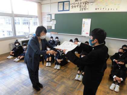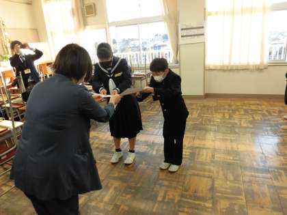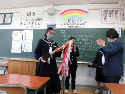 1学年の表彰の様子です。 最優秀1−6 優秀賞1−1,1−3