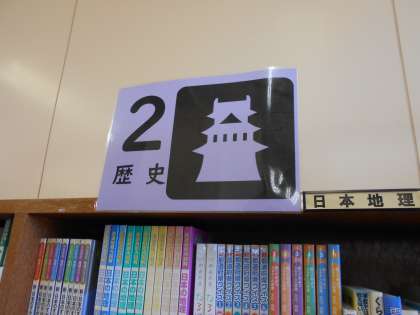 11月5日(金) 図書室の本棚に、楽しいピクトグラムが登場しました。本を選ぶのが楽しくなりますね。