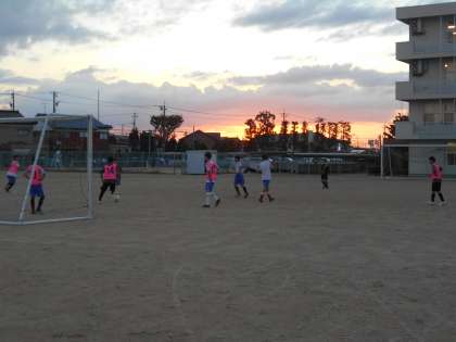 11月5日(金) 夕日を浴びながら…… (写真上:ソフトテニス部) (写真下:サッカー部)