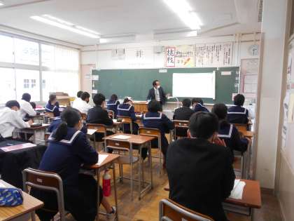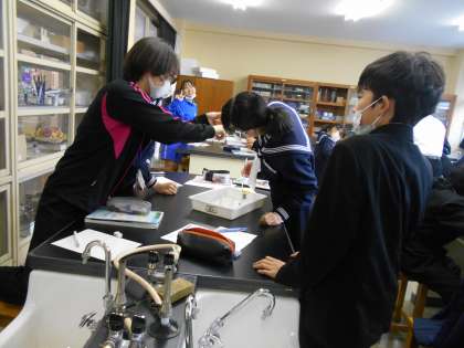 授業風景 2年生 公開日 2021/11/09 更新日 2021/11/09 2学年 11月9日(火) 2−2理科:水蒸気が水滴に変わる温度を調べています。実験は楽しい! 2−3理科:テストが返却されました。テスト解説を真剣に聞いています。