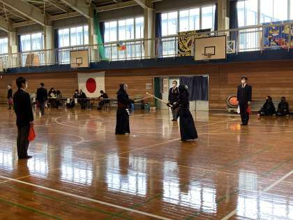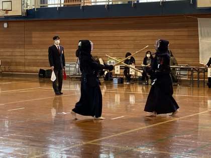 富山市立西部中学校を会場に、女子個人戦、団体戦が行われました。試合前の練習から、会場いっぱいに気合いの入った声が響いていました。本校の3人も日頃の練習の成果を発揮し、果敢に攻め、善戦しました。もっと勝ち進むためにますます練習に励んでいこうと意欲を高めていました。