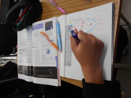 授業風景3年生 公開日 2021/11/17 更新日 2021/11/17 山室中学校のページ 11月17日(水) 3−1理科:天体について学習中です。地球と太陽の動きの関係を図を描いて理解します。 3−5数学:「中点連結定理とは・・・」先生の説明を聞き漏らすまいと、頑張っています。