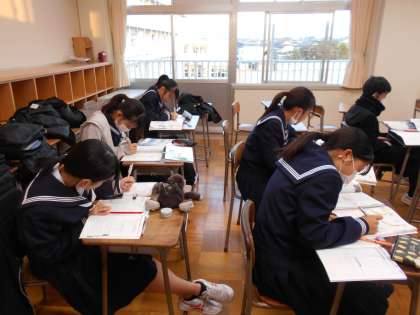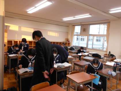 2学年 放課後学習会 公開日 2021/11/20 更新日 2021/11/20 2学年 2年生の放課後学習会は、黙々と各自が机に向かって集中して学習に取り組んでいます。先生方も間に入って、質問に答えて回っています。このような機会をぜひ、活用しましょう!