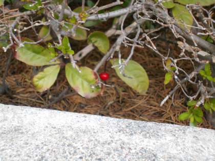 正面玄関脇の植え込みの中に、ぽつんと一つ、赤い実がなっているのを見付けました。季節は実りの秋から冬に向かっていますが、こんなところにも実がなっていたのかと、鮮やかな赤色を見て驚きました。子供たちの中にも、例えばテストの点数のように、はっきりしていて見えやすい成長と、なかなか気付かない、見えにくい成長があると思います。見えにくいけれど、それぞれが努力して成長しているところにも目を向けることができればと、赤い木の実を見て思いました。