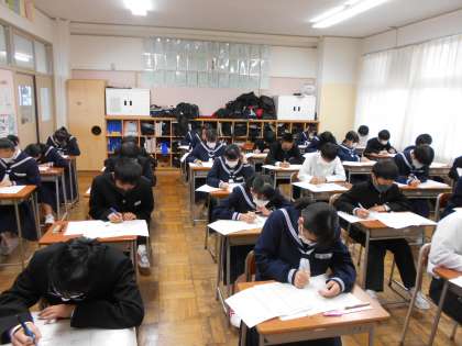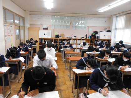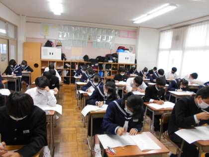 第3回定期考査1日目です。本日は、社会、数学、技術・家庭です。