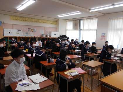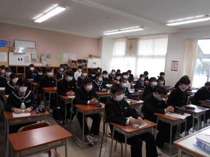 避難訓練その2 公開日 2021/11/26 更新日 2021/11/26 山室中学校のページ 11月26日(金) 訓練後の校長先生の講評は、各教室で聞きました。また、今日の訓練を振り返っての自己評価を行いました。