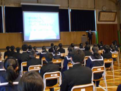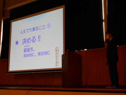 1年生は、株式会社ユニオンランチの社長様をお迎えして働く人に学ぶ講演会を実施しました。言葉の大切さ、人生は選択の連続であること、夢と目標と目的をもつことなど、たくさんの心に響くお話をいただきました。