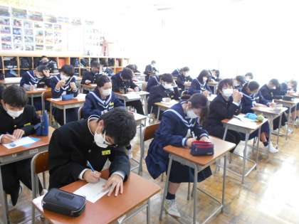 人権週間最終日 公開日 2021/12/10 更新日 2021/12/10 山室中学校のページ 12月10日(金) 人権週間最終日を迎えました。これまでの人権作文を聞いて考えたことを書いたり、1週間取り組んできたあたたかい言葉をかけるweekを振り返ったりしました。 一人一人の中に生まれた人権意識を、これからも大切に育てていきましょう。