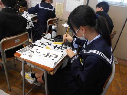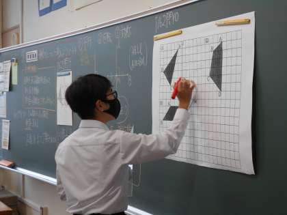 1年生 授業風景 公開日 2021/12/13 更新日 2021/12/13 1学年 12月13日(月) 1−1数学:図形の移動です。グラフのマス目や三角定規を使って、移動しています。 1−2国語:書き初め練習が始まりました。真剣に手本を見ながら、筆を運んでいます。 1−5理科:グラフの描き方のポイントを押さえて・・・いざ、実践!