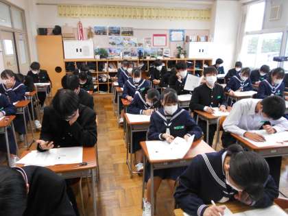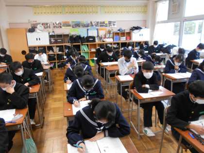 3年生 実力テスト 公開日 2021/12/13 更新日 2021/12/13 山室中学校のページ 12月13日(月) 1限数学、2限社会、3限理科、4限英語、5限国語です。頑張れ!3年生! (写真上:4組、下:5組)