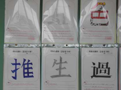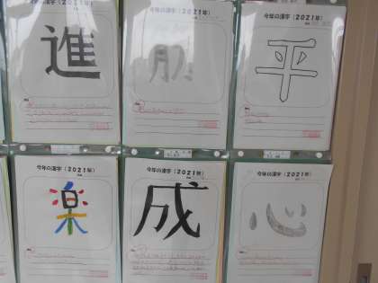 3年5組の教室前には、今年の漢字を一文字で表したものが掲示されています。師走を感じます。それぞれ個性溢れる一文字が並んでいますね。それにしても「筋」とは!?