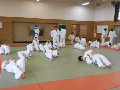 2年生 柔道 公開日 2021/12/15 更新日 2021/12/15 山室中学校のページ 12月15日(水) 2年1、2組男子の体育では、柔道をしています。授業が始まるやいなや、ウォーミングアップが始まります。受け身を連続で行うなど、なかなかの迫力です!