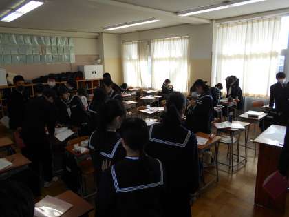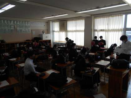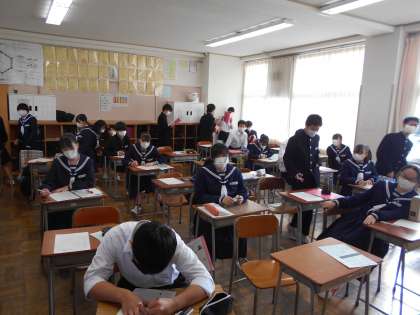 2年生 今学期最後の学活その1 公開日 2021/12/24 更新日 2021/12/24 山室中学校のページ 12月24日(金) もらったばかりの通知表をのぞきこんで、2学期の自分を振り返っています。 (写真上:1組、中:2組、下:3組)