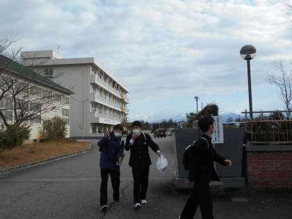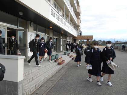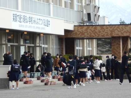 さようなら!また来学期! 公開日 2021/12/24 更新日 2021/12/24 山室中学校のページ 12月24日(金) 下校時刻になると、玄関付近で友達と名残惜しそうに話し込む生徒、「メリークリスマス!」「よいお年を!」と挨拶しながら帰る生徒たちの姿が。 来学期もみなさんの元気な姿を待っています!