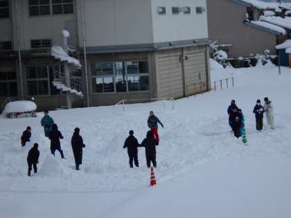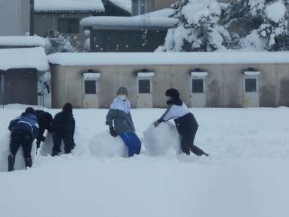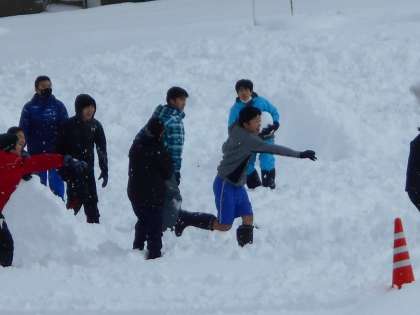 冬休みの部活動〜卓球部〜 公開日 2021/12/28 更新日 2021/12/28 山室中学校のページ 12月28日(火) 卓球部はいつも使用している第2体育館の大掃除を終えてから、外に出て雪合戦大会です。なかなか本格的な雪合戦のコートがいつのまにか作られていました。(顧問の先生のお手製) 積もりたての雪の中、元気よく雪合戦や雪だるま作り、新雪にジャンプ等して楽しんでいます。