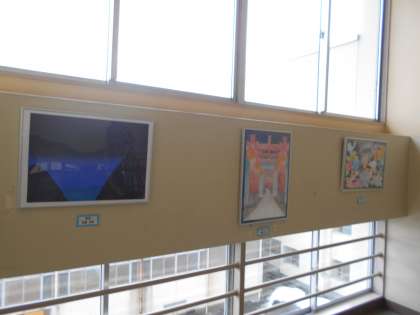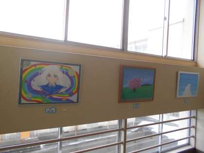 各階の階段踊り場には、美術部生徒の作品がずらりと並んでいます。どれも個性溢れる作品ばかりです。