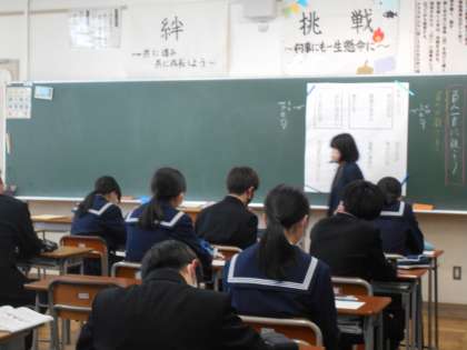 2年生 授業風景 公開日 2022/01/13 更新日 2022/01/13 山室中学校のページ 1月13日(木) 2−3理科:直列回路と並列回路の法則について実験で確かめています。 2−4国語:百人一首について学んでいます。 2−5社会:東海地方の産業にはどのような特徴があるのかな?