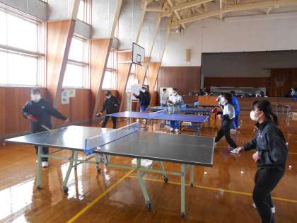 休日の部活動〜卓球部〜 公開日 2022/01/15 更新日 2022/01/15 山室中学校のページ 1月15日(土) 卓球部は、自分たちのやるべきことがしっかり分かっていて段取りよく練習を進めています。黙々と打ち合いをしています。