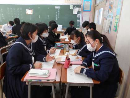3−2国語:漢字検定のポスターの批評文を各班で考えています。