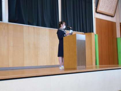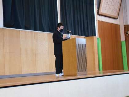 6限に体育館で1年生の意見発表会が行われました。各クラスの代表が、新年の抱負を発表しました。昨年の自分を振り返り、学習や部活動、委員会活動等について、今年はどのように取り組みたいと思っているかを述べました。壇上で発表するのは大変緊張したと思いますが、どの生徒も精一杯頑張っていました。他の生徒たちの発表を聴く態度も素晴らしく、発表者に温かい拍手を送っていました。