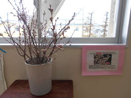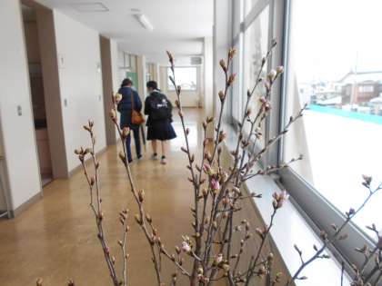 毎日、凍えるほど寒いと思っていましたが、3年生の啓翁桜のつぼみが膨らんできて、ピンクの花びらが見えてきました。3年生は今日から3日間進路懇談会です。卒業後の進路に頭を悩ませ、受験勉強がつらい日々だと思いますが、冬まっただ中に花を咲かそうとしている啓翁桜に3年生の姿が重なります。健康に留意してがんばってください。
