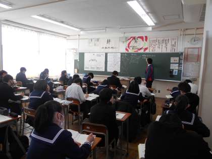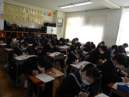 2年生 授業風景 公開日 2022/01/21 更新日 2022/01/21 山室中学校のページ 1月21日(金) 3年生に向かう0学期、さすが2年生、授業に集中しています! (写真上:2−1数学、中:2−5英語、下:2−6社会)