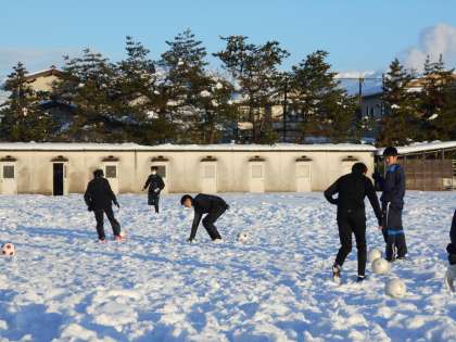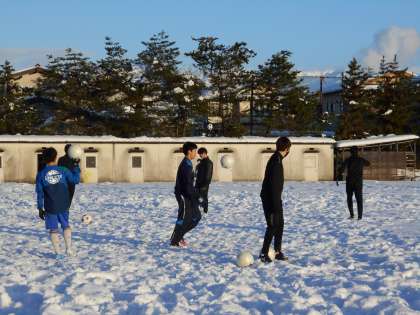 雪上サッカー部 公開日 2022/01/21 更新日 2022/01/21 山室中学校のページ 1月21日(金) ふとグラウンドに目をやると、何とサッカー部が雪上でドリブルをしています!何でも雪の上だからこそ筋肉が鍛えられるとか・・・。頑張れ、サッカー部!