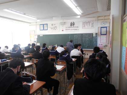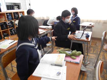 1年生 授業風景 公開日 2022/01/25 更新日 2022/01/25 山室中学校のページ 1月25日(火) 1−1英語:誰かについて紹介する文について勉強しています。 1−3国語:自立語についてクロームブック上のフラッシュカードで学びます。 1−5国語:意見文とはどのようなものなのでしょう?