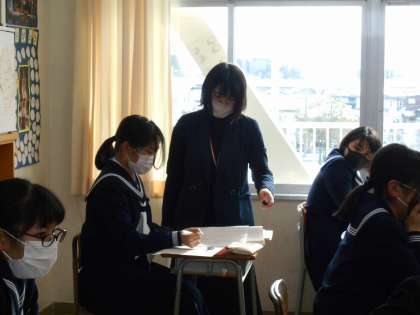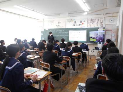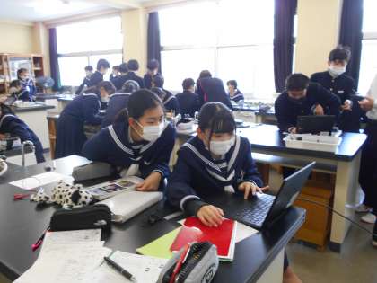 2年生 授業風景 公開日 2022/01/25 更新日 2022/01/25 山室中学校のページ 1月25日(火) 2−2理科:電流と電圧の関係について、実験結果をクロームブックにまとめています。 2−4英語:本文の内容を理解できたかな?先生の解説をしっかり聞いています。 2−5国語:古文の現代語訳にチャレンジ中です。