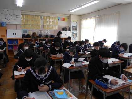 2年生 授業風景 公開日 2022/01/31 更新日 2022/01/31 山室中学校のページ 1月31日(金) 2−1英語:ワークシートを先生がチェック、アドバイスして回ります。 2−4国語:音読にチャレンジ中。各自、自分でチャレンジするレベルを選んで挑戦しています。 2−5英語:受け身の表現を意識しながら本文を読み取っていこう!