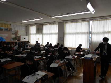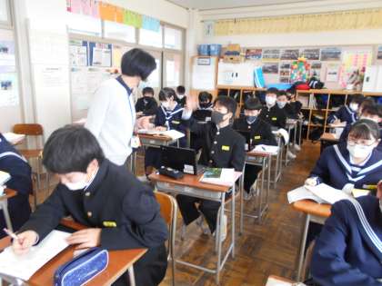 1年生 授業風景 公開日 2022/01/31 更新日 2022/01/31 山室中学校のページ 1月31日(金) 1−3理科:地震発生後のP波とS波にはどんな特徴があるのかな? 1−4英語:「My Hero」についてクロームブックで調べよう 1−6国語:漢文の暗唱です。各自で挑戦するレベルを選んでチャレンジ中!