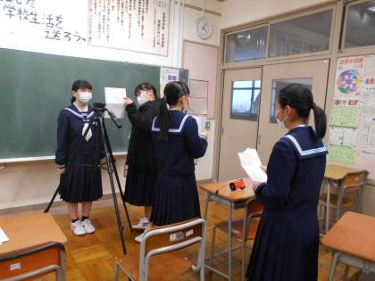 各委員会の委員長達が、新入生説明会のDVD作成に向けて準備をしています。内容がしっかり伝わるように、何度も練習しています。新入生に喜んでもらえるといいですね。