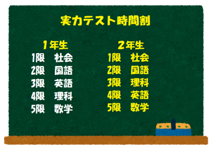 1、2年生 明日実力テストです! 公開日 2022/02/02 更新日 2022/02/02 山室中学校のページ 2月2日(水) 1、2年生は明日実力テストです。これまでのテストに比べ、範囲も広いですがこれまで範囲表を元にコツコツと学習を進めてきたと思います。 明日は最後まで、落ち着いてテストに臨みましょう!