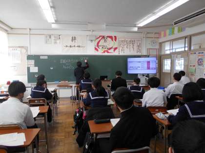 2年生 授業風景 公開日 2022/02/04 更新日 2022/02/04 山室中学校のページ 2月4日(金) 昨日の実力テストが、もう返ってきました!解説を聞きながら、しっかり見直しをしています。 (写真上:2−1理科、中:2−2数学) 技術では、電気について調べ、各自パワーポイントにまとめています。 (写真下:2−4技術)