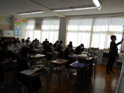 1年生 授業風景 公開日 2022/02/07 更新日 2022/02/07 山室中学校のページ 2月7日(月) 1−1理科:地震が起きる仕組み、プレートについて学習中です。 1−2社会:アメリカの工業について知ろう! 1−4英語:過去形の文章を作れるように、動詞を過去形に直しています。