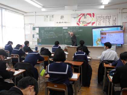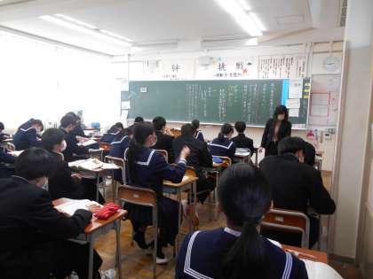2年生 授業風景 公開日 2022/02/08 更新日 2022/02/08 山室中学校のページ 2月8日(火) 第4回の定期テストも近づいてきました。授業内容を、しっかりと聞き漏らさないように集中しています。 (写真上:2−1社会、中:2−3数学、下:2−4国語)