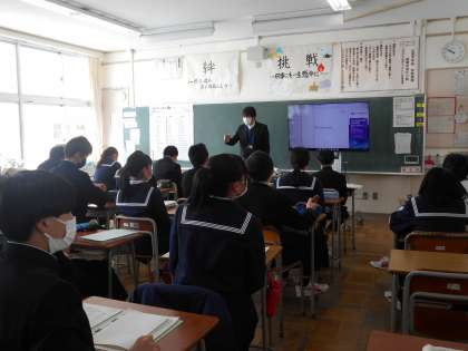 2−4英語:受動態の学習です。ディスプレイの画面に出る単語を発音してみよう。