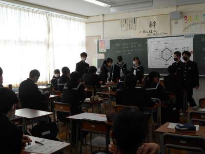2年生 学級力スマイルタイム 公開日 2022/02/17 更新日 2022/02/17 山室中学校のページ 2月17日(木) 2年生は、3学期まとめのスマイルタイムです。学級力アンケートの結果をもとに、各クラスの成長点と、これから重点的に取り組んでいきたいことを話し合っています。 レーダーチャートを見て、3年生につながるよい取組を実践していきましょう!