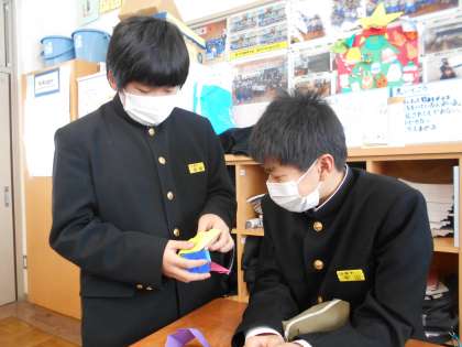 実は、校長先生は折り紙が得意です。生徒と一緒に折り紙を折ったりお話をしたりと、特別な1時間になりました。