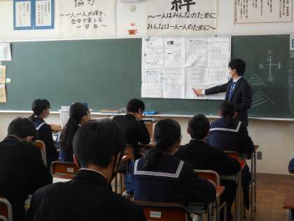 1−5理科:地層について、問題の解き方や解説をしっかりと聞いています。ノートにもワークのページを貼って、しっかりとまとめています。