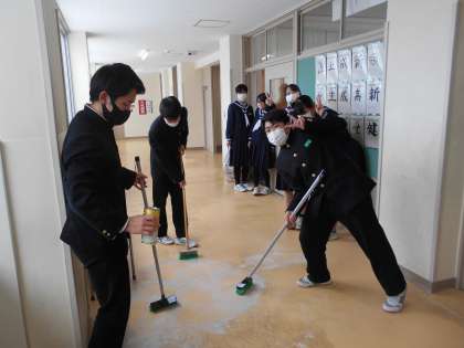 3年生 掃除で校舎をピカピカに! 公開日 2022/02/18 更新日 2022/02/18 山室中学校のページ 2月18日(金) 3年生は掃除の時間をのぞいてみましょう。 廊下の黒ずみをピカピカにする人、窓を磨く人、出入り口のレールをピカピカにする人、教室の雑巾がけを黙々とする生徒・・・その働きぶりが、本当に素晴らしいです。感心しました。 3年間お世話になった校舎も喜んでいます!