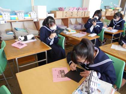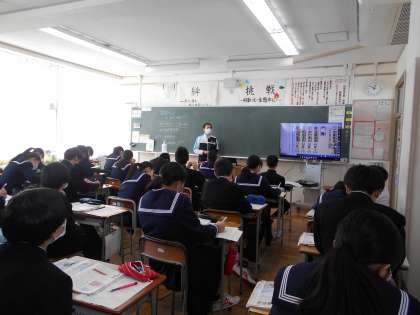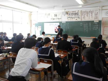 2年生 授業風景 公開日 2022/02/21 更新日 2022/02/21 山室中学校のページ 2月21日(月) 2−1美術:アクリルアートガラスの削りが、着々と進んでいます。そろそろ完成かな? 2−2国語:用言のまとめです。テスト前にワークシートで確認しよう! 2−4社会:藩閥政治とは?次々に質問が飛んでいます。