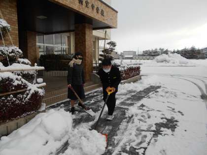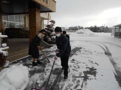 縁の下の力もち〜朝の除雪〜 公開日 2022/02/21 更新日 2022/02/21 山室中学校のページ 2月21日(月) 今朝、生徒玄関前で雪かきをしていると、「手伝いましょうか?」と4人の生徒が手伝ってくれました。お陰であっという間に玄関前の雪がなくなりました。ありがとうございました!