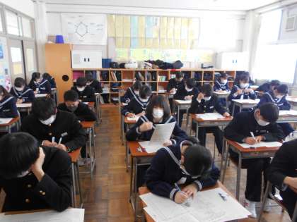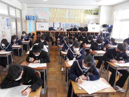 2年生 第4回定期考査1日目 公開日 2022/02/22 更新日 2022/02/22 山室中学校のページ 2月22日(火) とっても集中しています。姿勢もよいですね! (写真上:2−4、中:2−5、下:2−6)