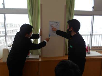 3年生 家庭科ポスターセッション 公開日 2022/02/22 更新日 2022/02/22 山室中学校のページ 2月22日(火) 3年5組の家庭科では、保育学習のまとめとしてポスターセッションを行いました。幼児の身体、心、生活習慣、遊び、おもちゃ等、様々な視点から発表があり、新しい気付きが多い発表会になりました。